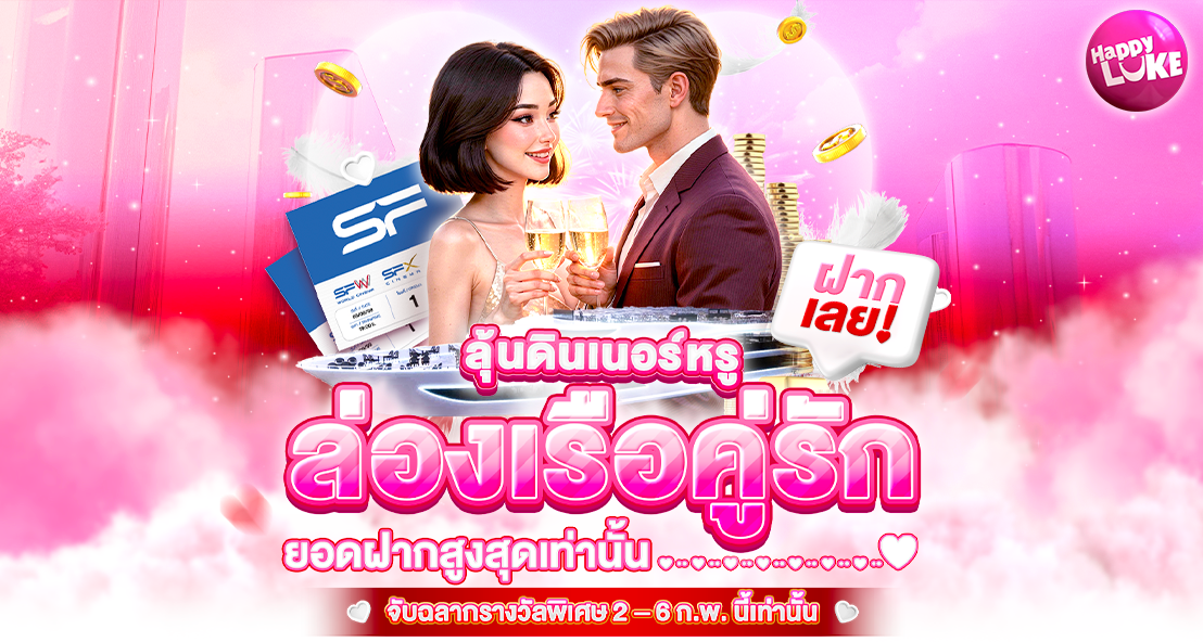 ฝากและทำยอดหมุนเพื่อก้าวไปสู่จุดสูงสุดและรับรางวัลของคุณ! ลำดับฝากสูงสุด รางวัลลำดับ1ดินเนอร์หรู ล่องเรือ ROYAL SUNSET 2 ที่นั่ง ลำดับ2SF ตั๋วดูหนังที่คุณชอบ 2 ที่นั่ง ลำดับ3500 Pointล...